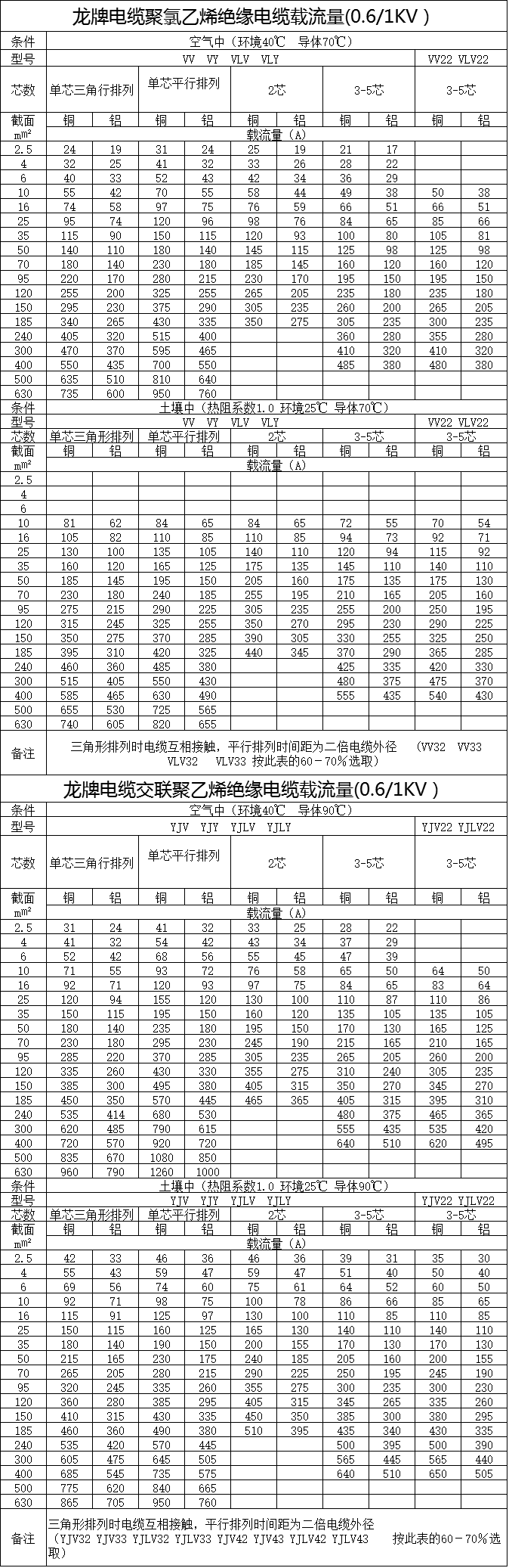 以上數(shù)據(jù)只適用于延長牌國標電纜,僅供參考,請以專業(yè)計算為準。